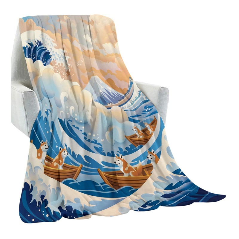 amepay Japanese Wave Shiba Inu Blanket Gifts for Kids Girls Women,Cute Dog in Boats Throw Blankets,Soft Comfy Lightweight for Room Couch Bed Modern Decor,Pet Lover 60x80in