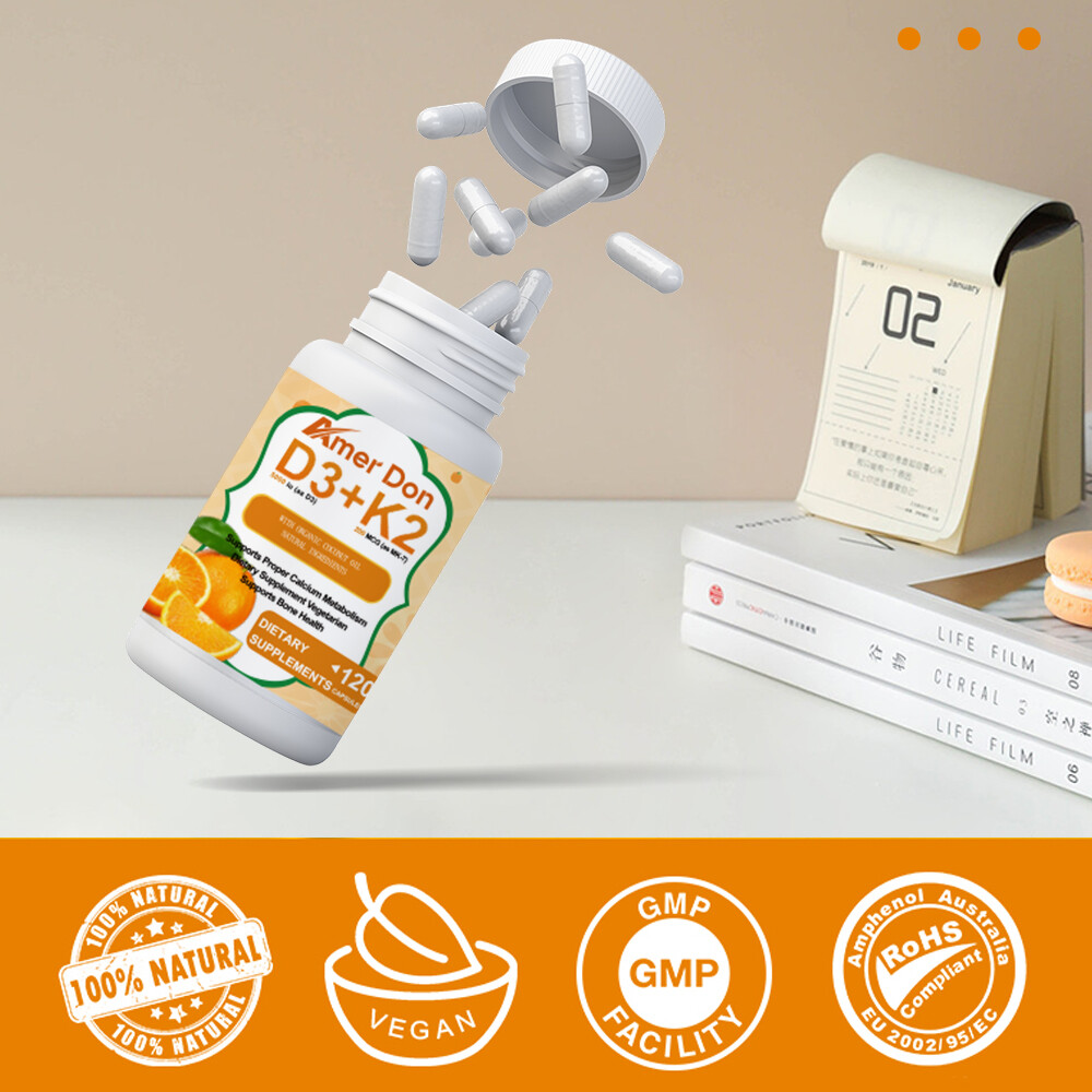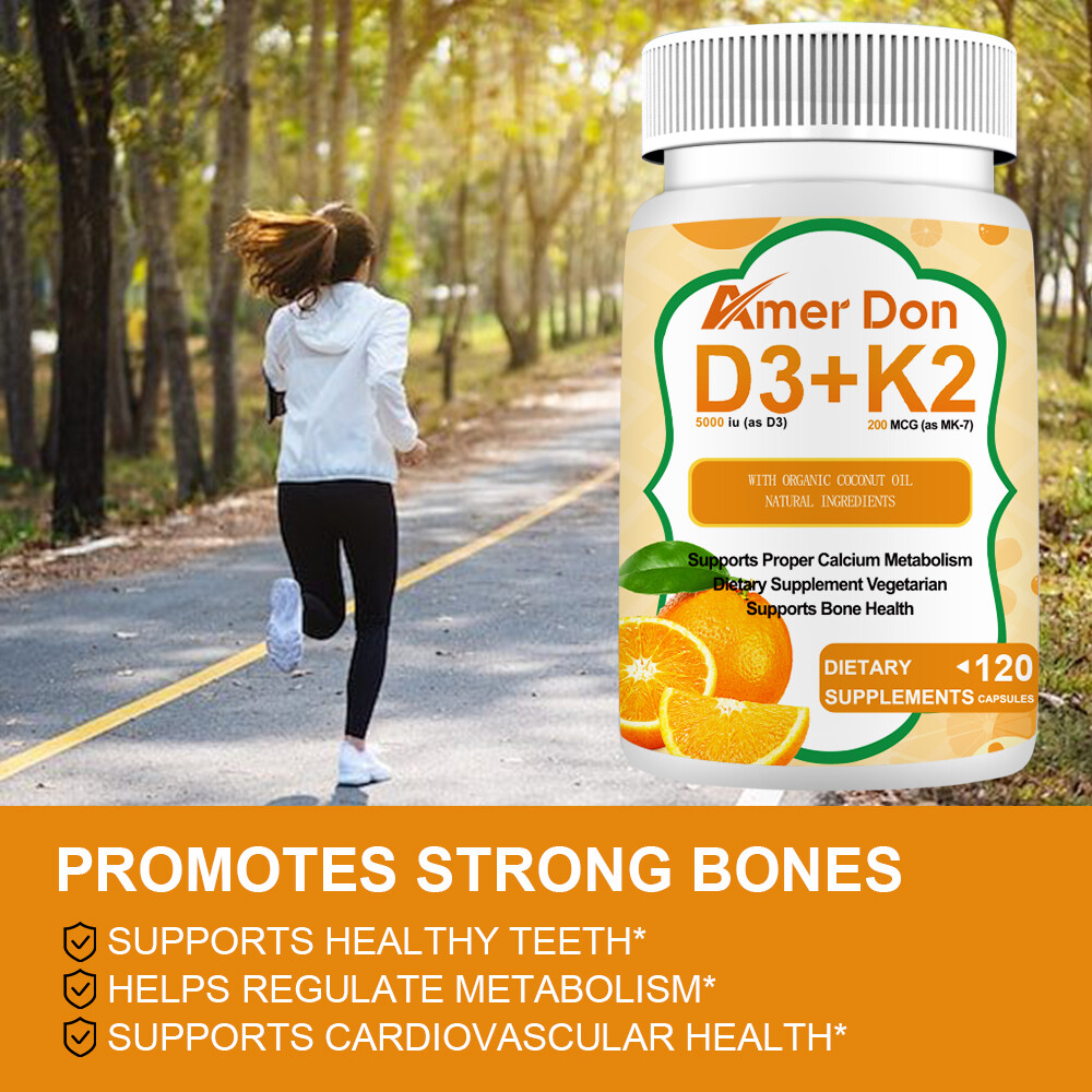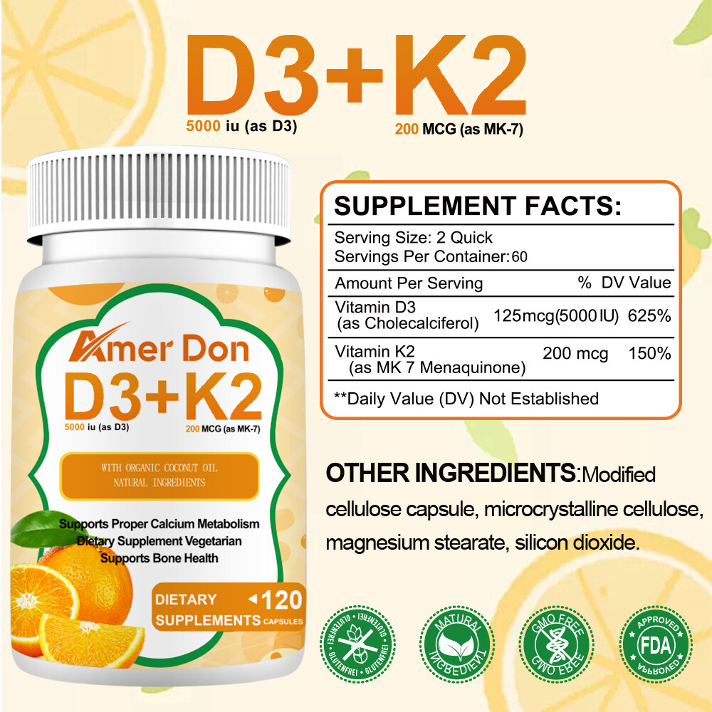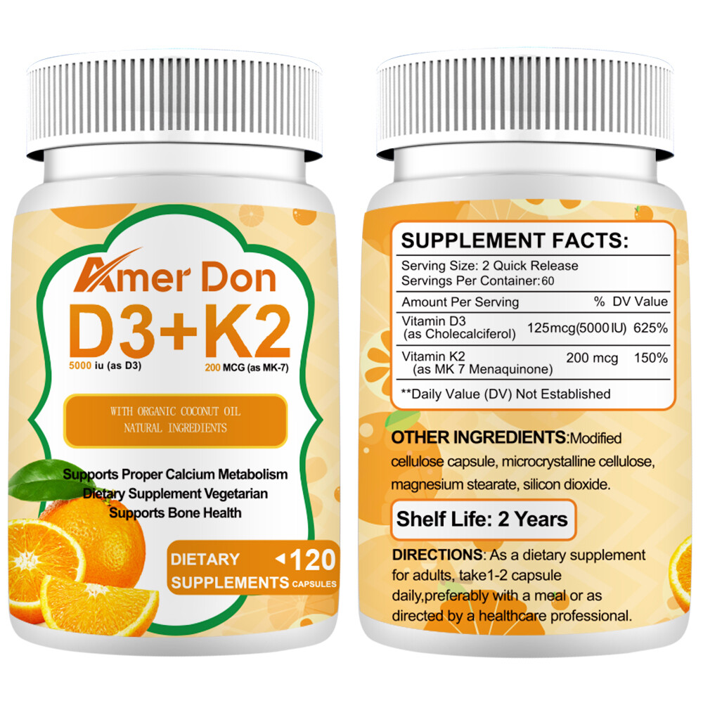 Amer Don Health Vitamin D3 + K2 Supplement. 2 in 1 Formula. Immune Support. 120 Capsules