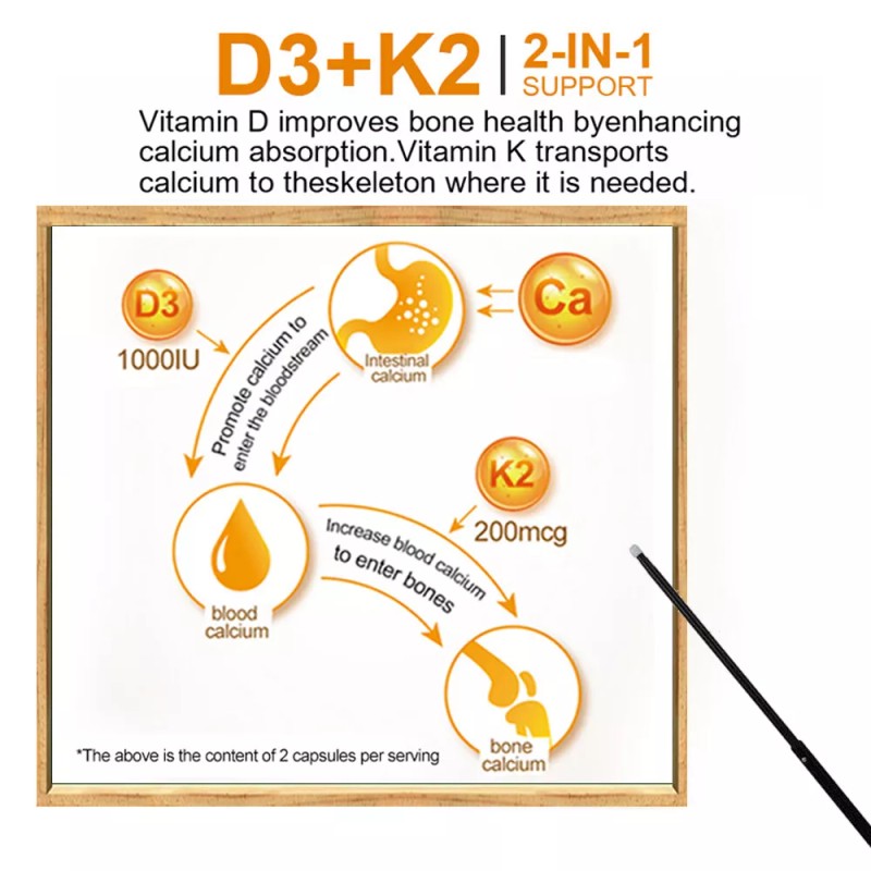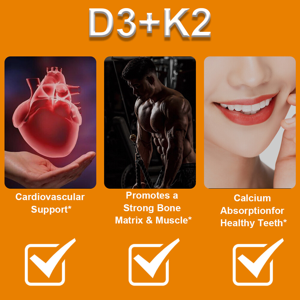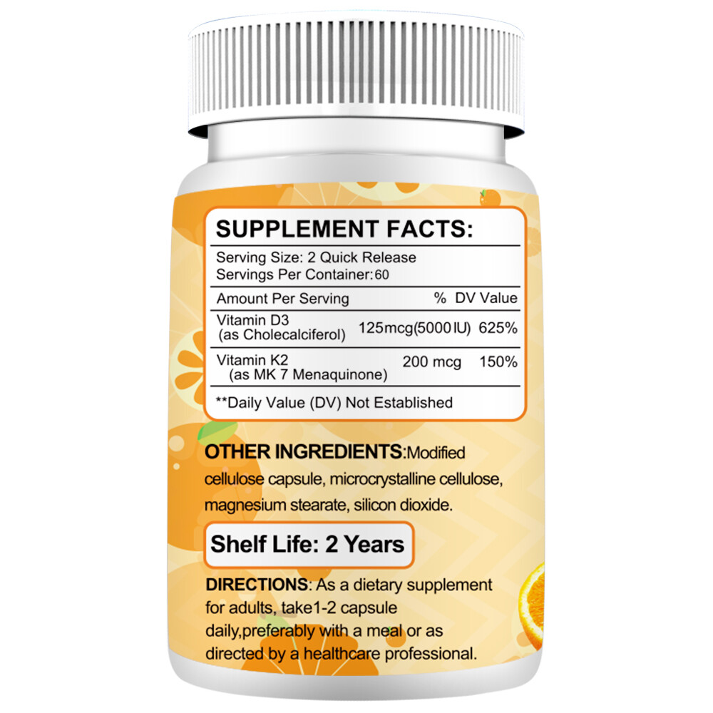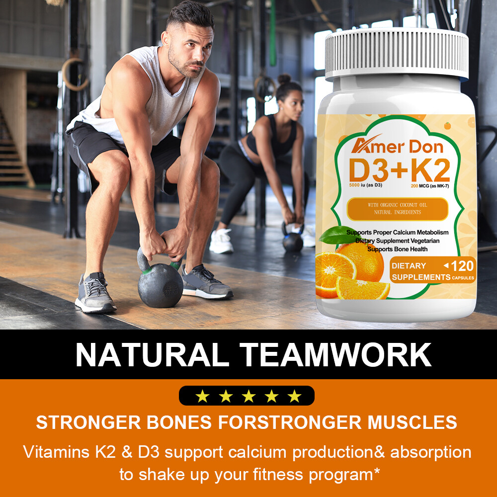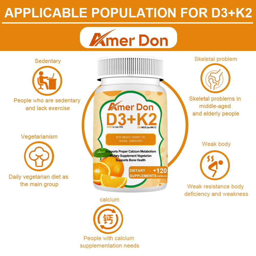 Amer Don Health Vitamin D3 + K2 Supplement. 2 in 1 Formula. Immune Support. 120 Capsules
