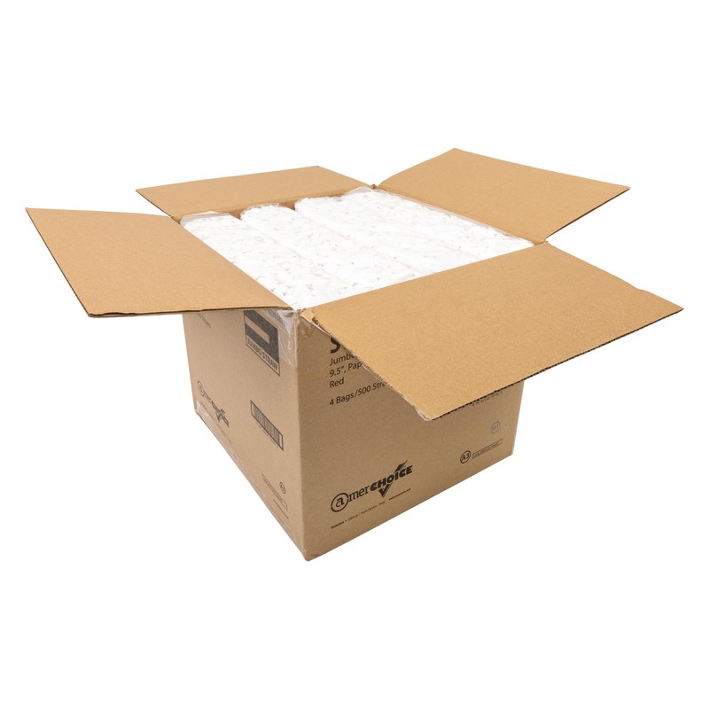 AmerCare 9.5 Inch Jumbo Red Straws with Paper Wrap, Case of 2000