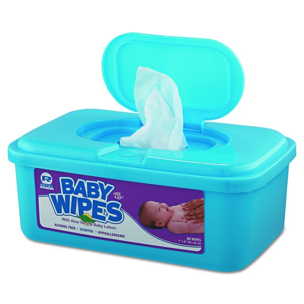 Royal RPBWU80 Baby Wipes Tub, White, 80 Per Tub (Case of 12)
