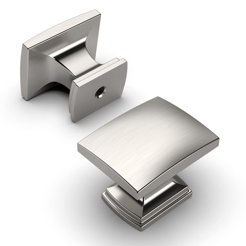 Amerdeco 10 Pack Brushed Satin Nickel Cabinet Knobs 1-1/8 Inch Single Hole Cabinet Handles Dresser Knobs Square Drawer Knobs and Pulls for Bathroom Cabinets ZH0011