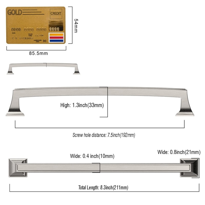 Amerdeco 10 Pack Brushed Satin Nickel Cabinet Pulls 7.5 Inch(192mm) Hole Center Cabinet Hardware Kitchen Cabinet Handles for Bathroom Drawer Pulls Dresser Pulls ZH0010
