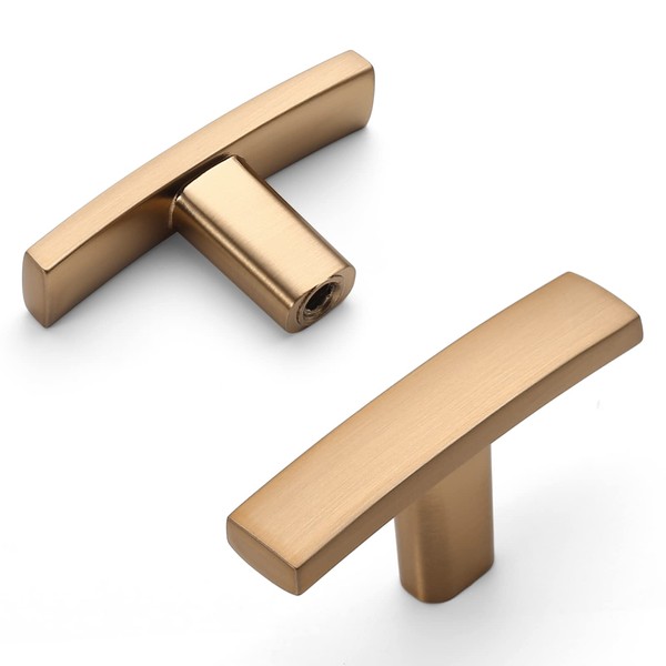 Amerdeco 10 Pack Champagne Bronze Cabinet Knobs Single Hole Brushed Brass Cabinet Handles 2 Inch Solid Zinc Alloy Cupboard Gold Drawer Knobs Kitchen Cabinet Knobs T Bar Hardware ZH0003