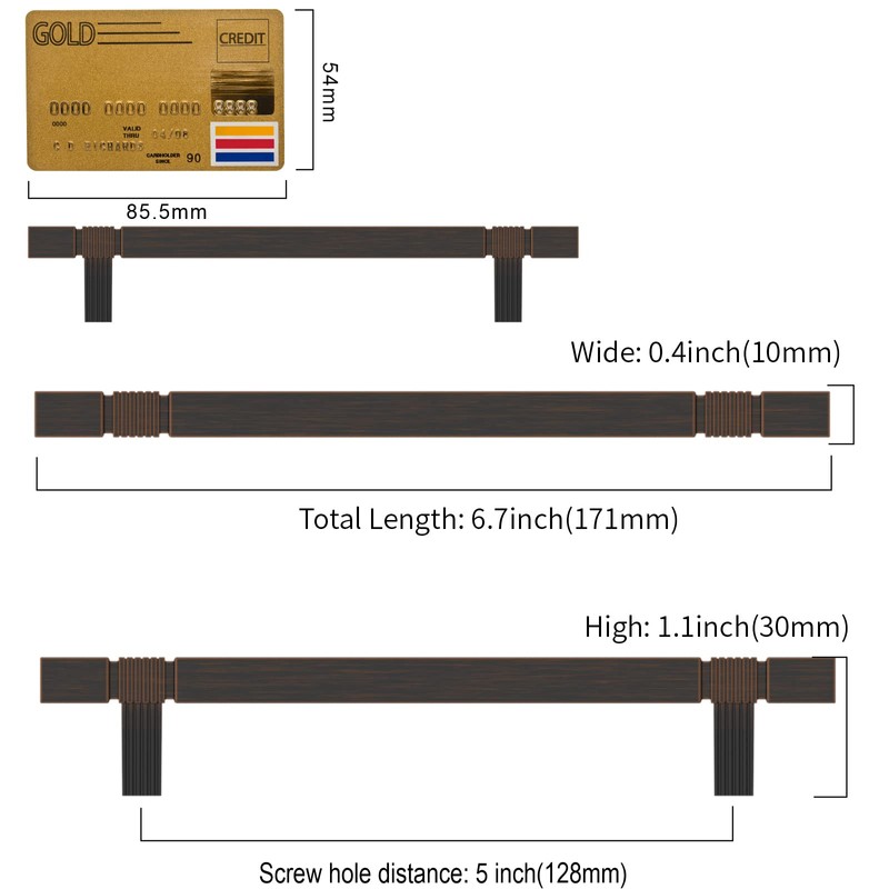 - Measurement: Hole Centers(CC):5 inch(128MM); Overall Length:6.7 inch(171MM);Width:0.4 inch(10MM);Projection:1.1 inch(30MM); Please check the Size of handles you require carefully before purchasing.