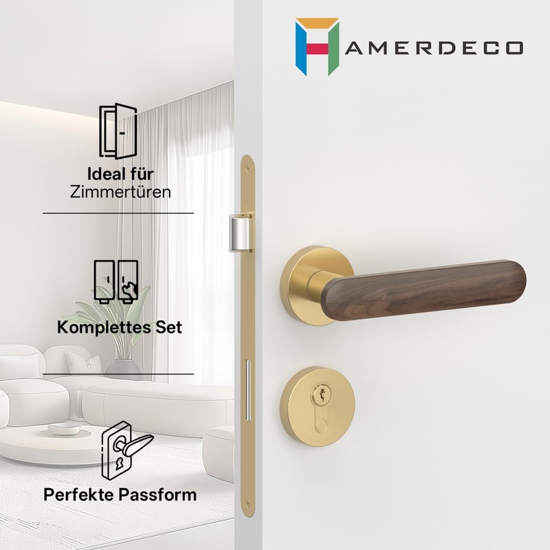 Amerdeco Door Handle Set Made of Wood in Walnut Colour Made of Aluminium - PZ...