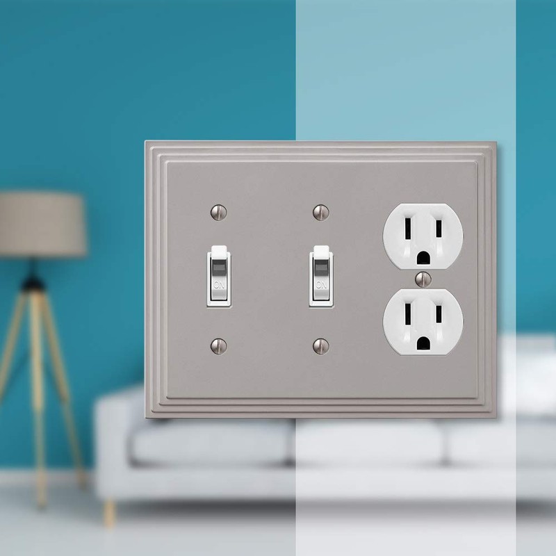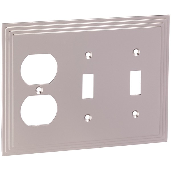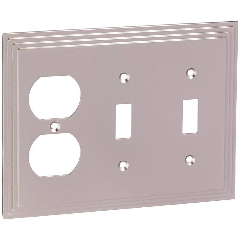 Amerelle Steps Double Toggle/Single Duplex Cast Metal Wallplate in Satin Nickel