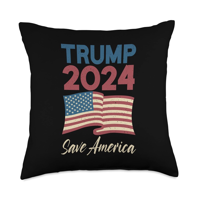 America 2024 Trump Tshirts Save America Election 2024 Throw Pillow, 18x18, Multicolor