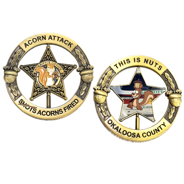 EL17-001 Okaloosa Deputy Sheriff Acorn Shots Fired Squirrel Spinner Challenge Coin