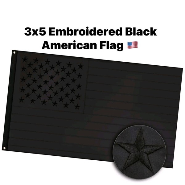 American 3ft x 5ft Embroidered Black American Flag - No Quarter Given Ships Free From KY!