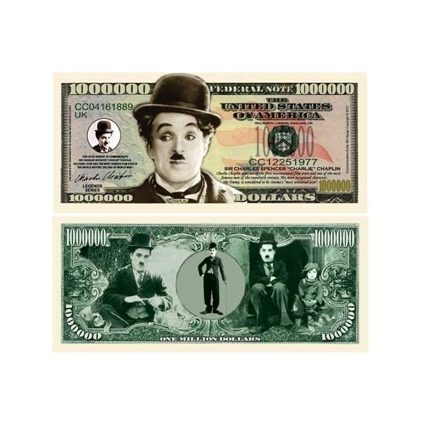 - Charlie Chaplin Commemorative Million Dollar Bill (Pack of 5 bills)