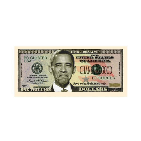 - Nobama 2012 Trillion Dollar Bill Collectible - Comes in Best Quality Currency Holder. This bill was highly requested and has become an incredibly fast seller.