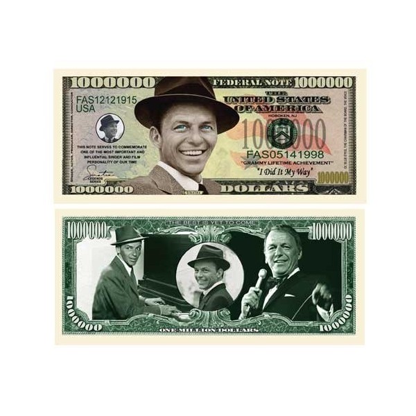 - Pack of 50 - Frank Sinatra Million Dollar Bills. A very special Million Dollar Commemorative Bill featuring Frank Sinatra, Old Blue Eyes, The Chairman Of The Board!