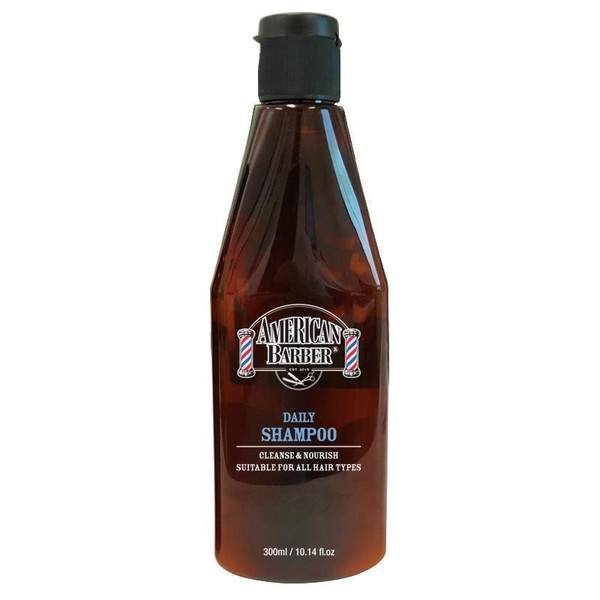What are the benefits and features of American Barber Daily Shampoo 300ml?- Cleanses and nourishes hair.