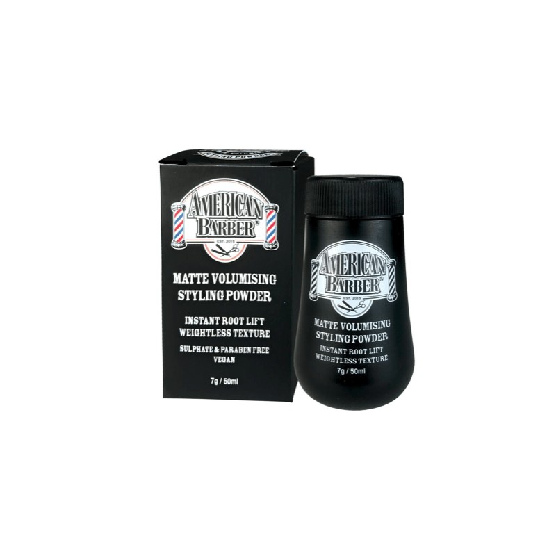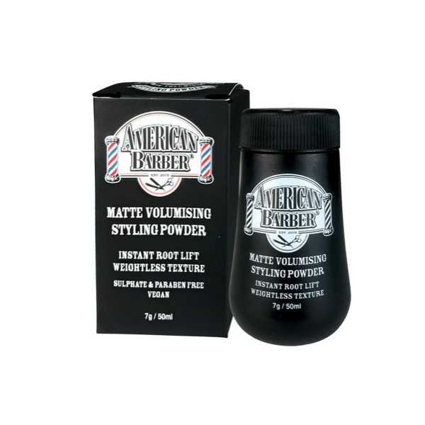 American Barber Matte Volumising Styling Powder 7g is a weightless matte styling powder that provides instant root lift and medium hold, ideal for all hair types including fine and thinning hair.