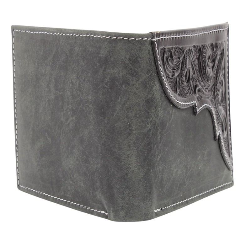 American Bison Tooled Side Bifold Wallet with Conchos–Oil Pull Up Classic Western Craftsmanship & RFID Protection (No Conchos, Black)