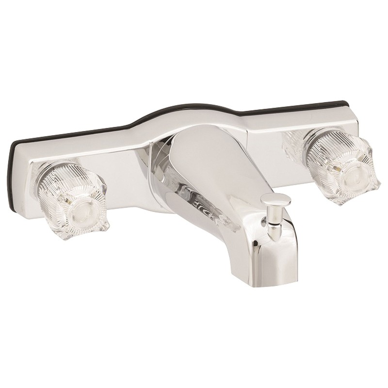 Brand Name: American Brass Product Type: Tub and Shower Faucet Number of Faucets: 2 Knobs Style or Series: Jocelyn Finish: Chrome Valve Included: No Handle Type: Knobs Required Rough In Valve Included: No Flow Rate: 2.5 gpm Diverter Type: Shower/Tub Connection Size: 1/2 in. ADA Compliant: No Space between handles and hookups: 8 in.