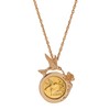 - Coin hangs from a 24 inch goldtone chain with a lobster claw clasp