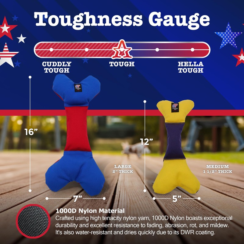 American Dog Da Bone – Durable Fetch Dog Toy Made in USA from Pet-Safe, Machine-Washable 1000D Nylon Material with Squeaker for Bonding, Play Time, Mental Stimulation, Exercise, Training & More