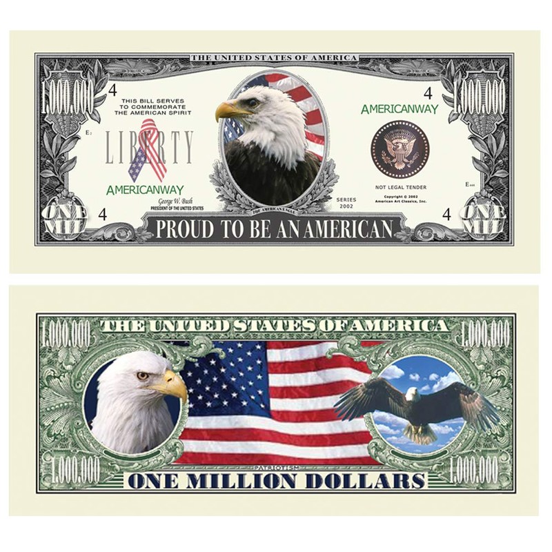 American Eagle "Pride" Million Dollar Bill With Bill Protector - Novelty Money