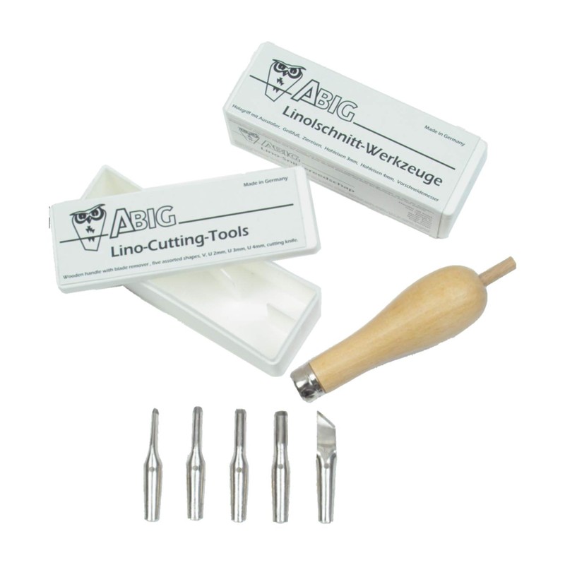 American Educational Products A-120100 ABIG Lino Cutting Tool Set with 6 Blades, Plastic Storage Box and Nib Compartment