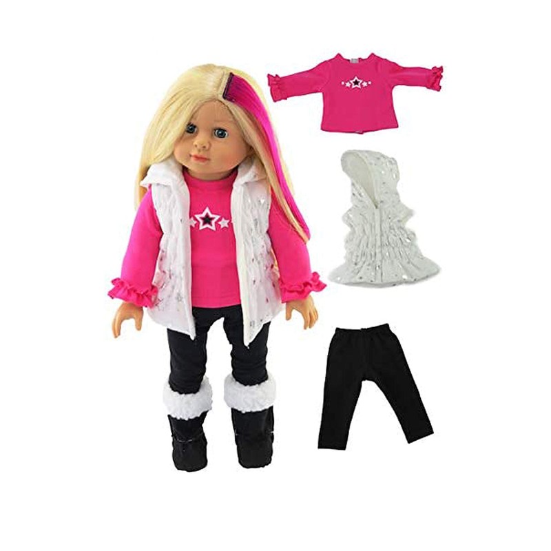 - PREMIUM QUALITY MATERIAL: Our Star Puffer Vest Pants Set for 18-inch dolls is crafted with the finest materials, ensuring durability and a realistic appearance. Your doll will look stylish and trendy in this high-quality accessory. Our clothing has beautiful fabrics with soft velcro closures.