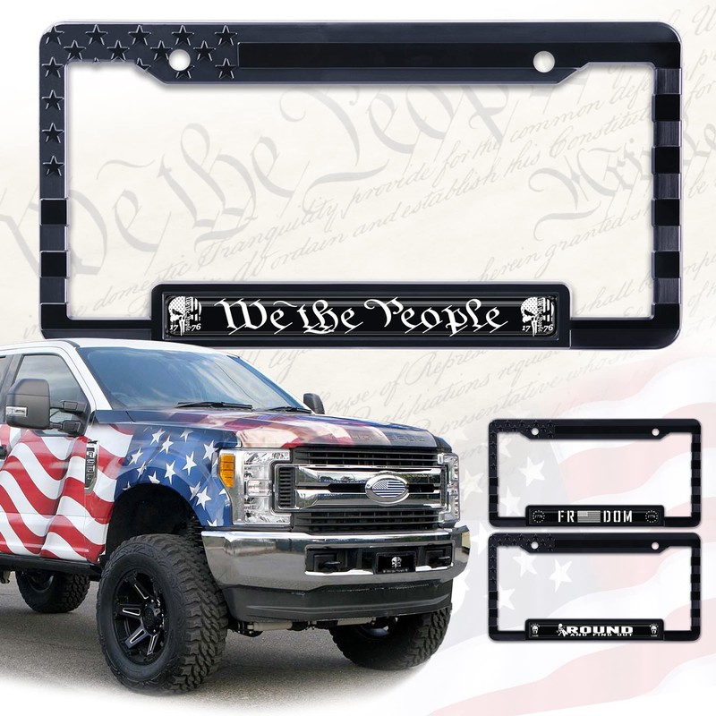 American Flag License Plate Frame Tag Bracket with 3D Raised Stars and Stripes. (We The People) (AF_Dome)