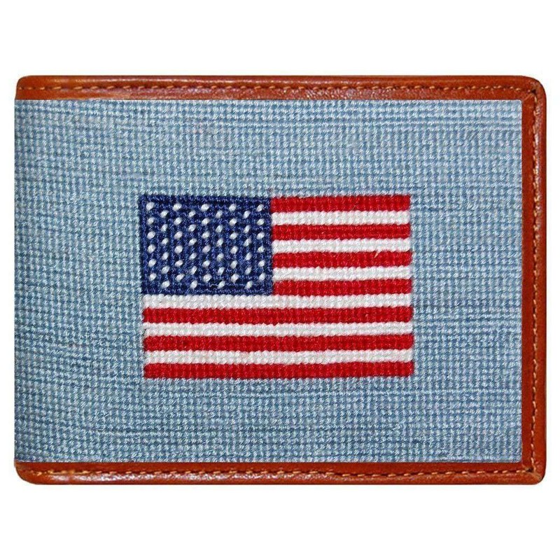 American Flag Needlepoint Wallet in Antique Blue by Smathers & Branson
