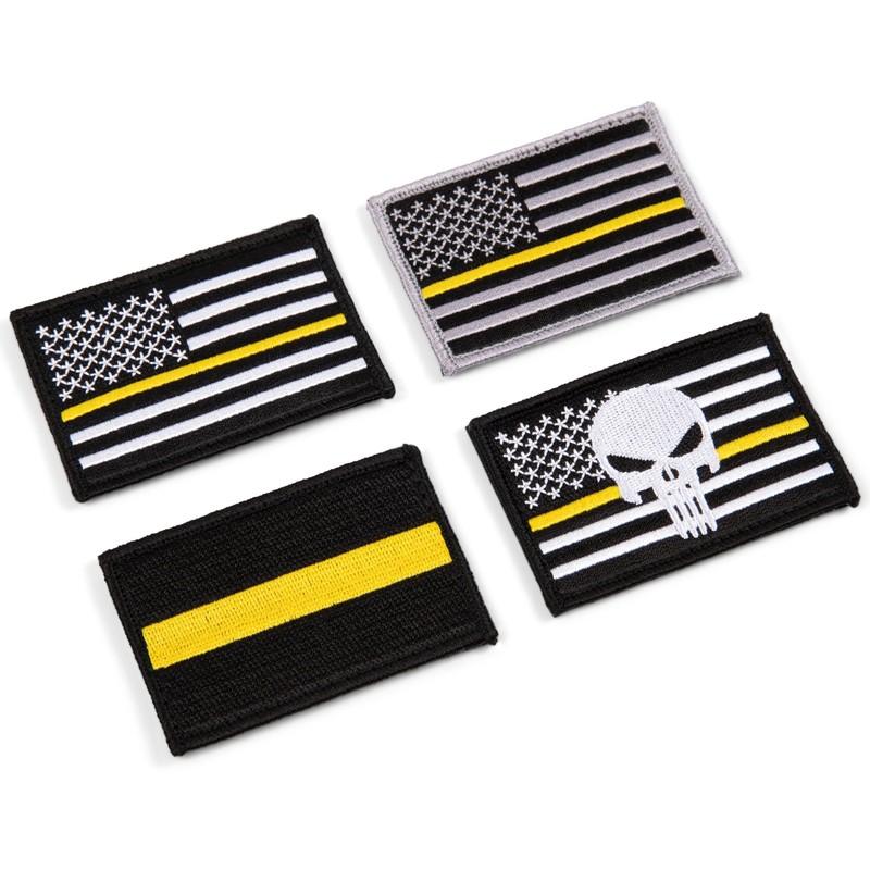 American Flag Patch 4-Pack Set, 2x3 inch, Embroidered, Hook and Loop, Military and Tactical Accessory for Clothing-Jackets-Hats-Backpacks (Thin Gold/Yellow Line)