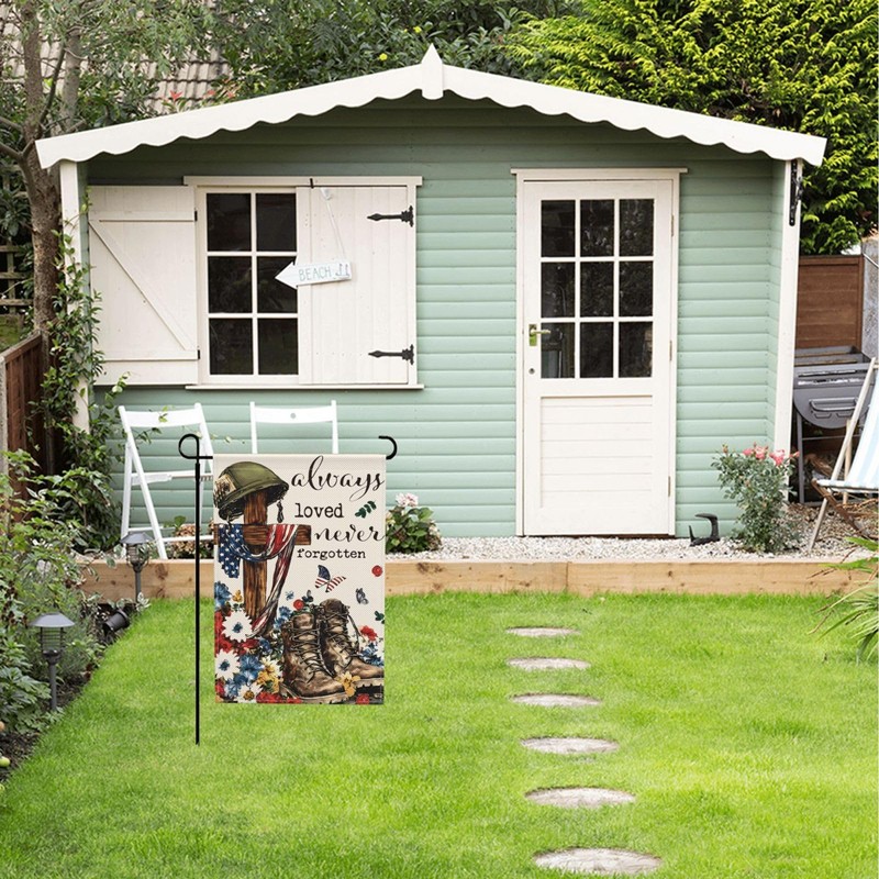 American Flag Soldiers Boots Garden Flags 12 x 18 Inch Double Sided 4th of July Garden Flag Burlap Memorial Day Patriotic Always Remember Never Forgotten Flowers Yard Outdoor Decoration