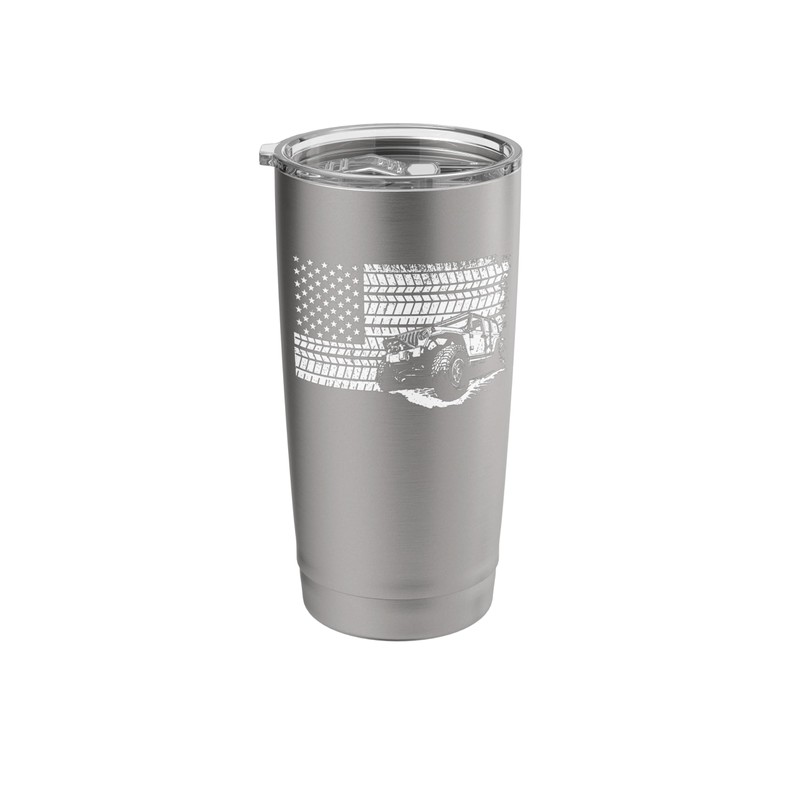 American Flag Tire Track 4x4 Offroad Vehicle Enthusiast Stainless Steel Insulated Tumbler