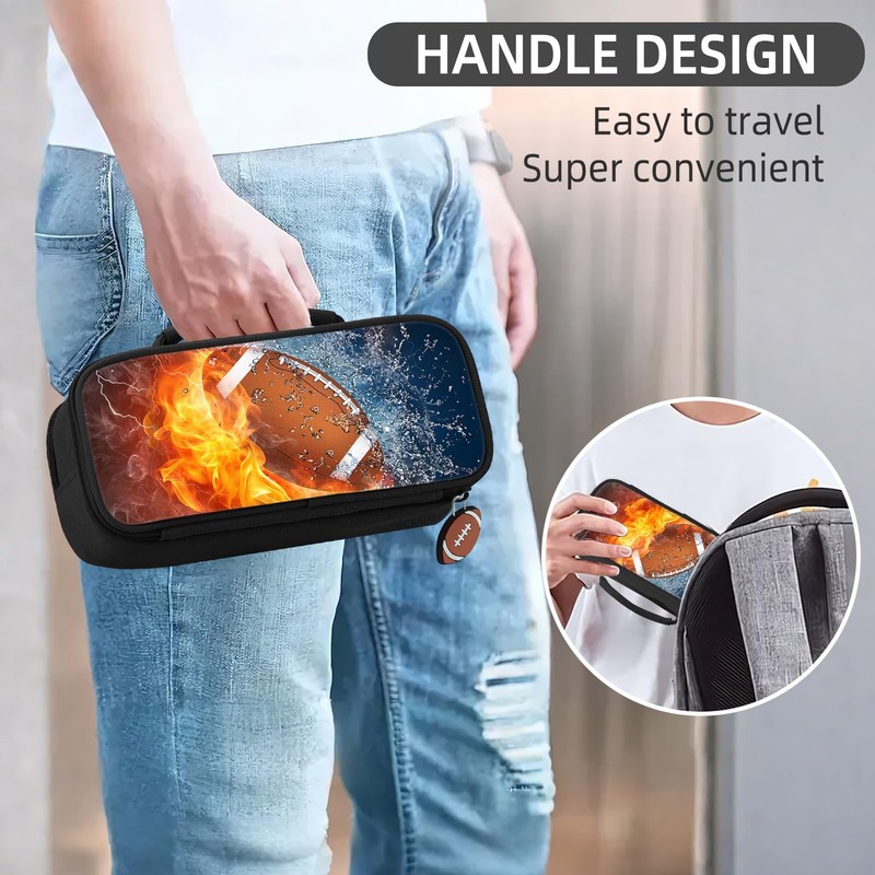 American Football Pencil Case for Boys - Large Pencil Pouch for Boys with Zipper Compartments & Handle - Big Capacity Pen Organizer Box Bag for Kids Teens School Supplies