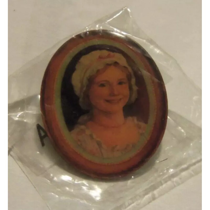 This American Girl Doll Felicity Circle of Smiles Portrait Pin from 2003 is a must-have for any doll collector. This pin is a single unit and features a multicolor design on a metal material. The pin is 3/8 in long, 1 3/8 in tall, and 1 1/8 in wide, with a weight of 0.2 lb.