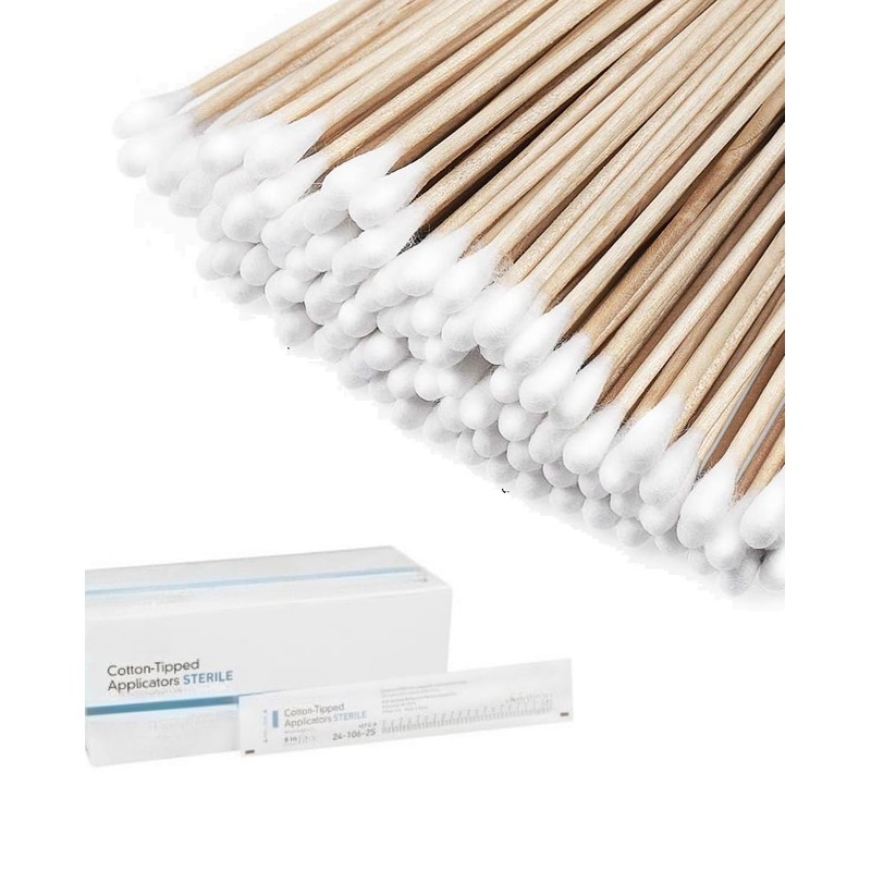 - The premium Applicators are sterile and come packed in convenient pouches. Cotton Tipped Wood Applicators are ideally sized for first-aid kits and emergency bags.