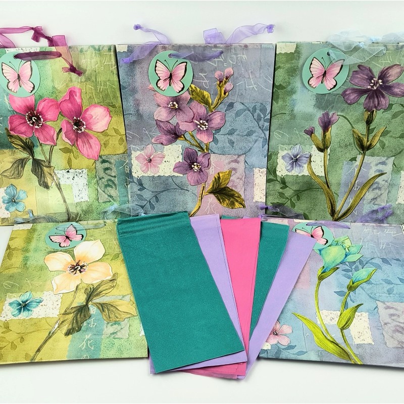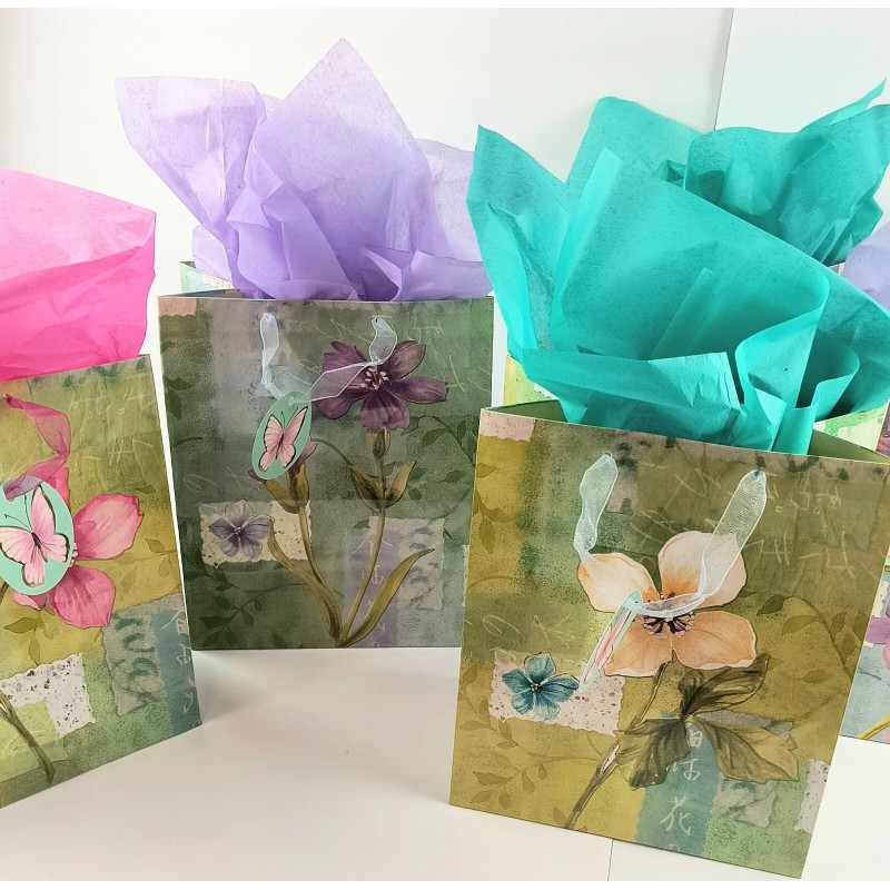 American Greetings 10" Spring Summer Floral Gift Bags w Tissue Paper 5 Pack