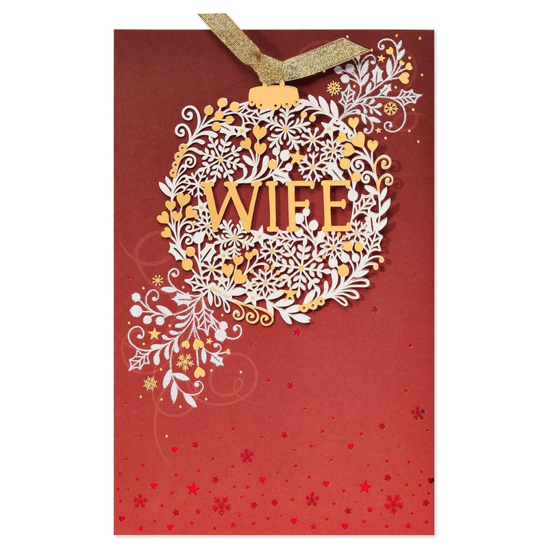 - This Christmas greeting card for a wife features glitter, foil and a detachable, keepsake Ornament with intricate die-cut patterns
