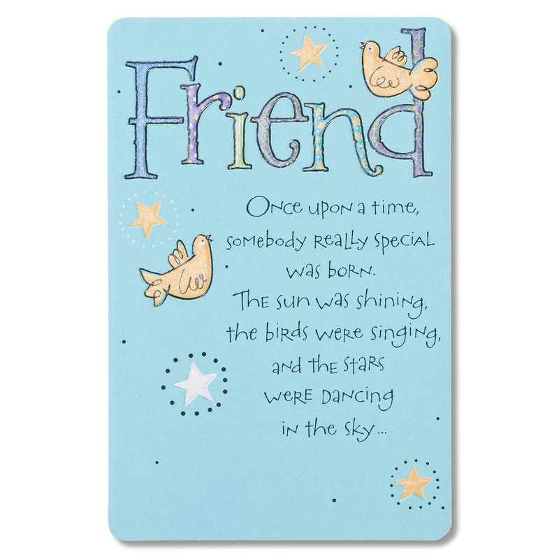 - Celebrate your friend’s birthday with this uplifting birthday card embellished with shiny foil and embossing on textured paper that lends a quality feel