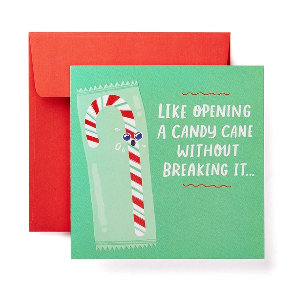 - This American Greetings Present Company Christmas card features candy cane humor and is made of thick, textured paper with embossing and clear foil