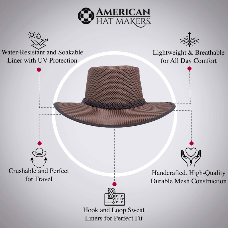 American Hat Makers Soaker Hat — Mesh Sun Hat for Men and Woman (Brown, Medium)