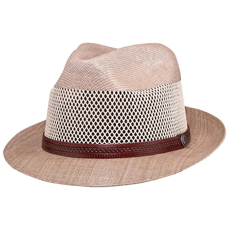 American Hat Makers Tuscany Straw Fedora Hat - Handcrafted, UV Sun Protection, Tan, Small
