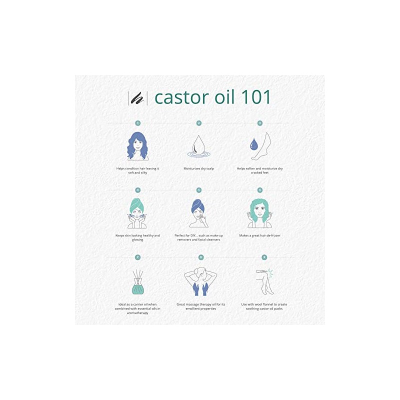 - Great For Hair; Castor Oil conditions hair leaving it soft and silky; It's also perfect for split ends, works as a de-frizzer, and can alleviate dry scalp; Promotes healthy hair