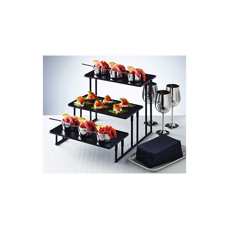 American Metalcraft ISP18 Rectangular Three-Tier Stand, Fixed, Black