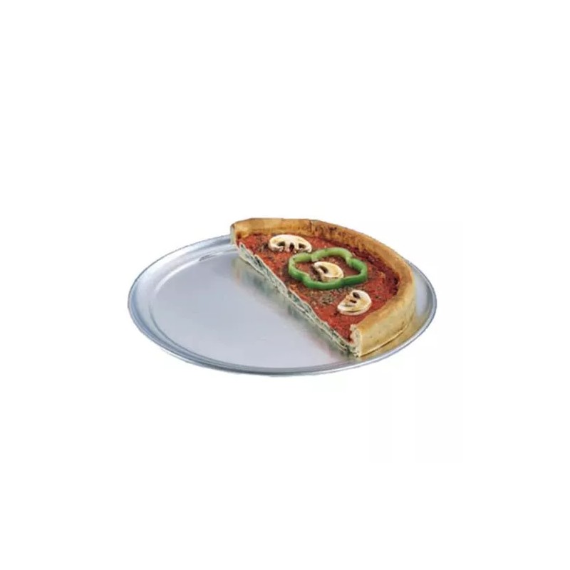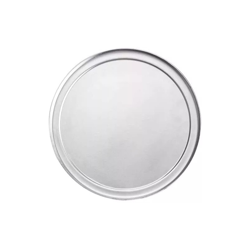 This aluminum pizza pan has a wide rim for optimal space for grasping the product. The product is 18? (Dia). This aluminum pizza pan is strong enough to handle the heaviest of food items while transferring them in and out of the oven. The body is constructed from a very dependable 18 gauge. This aluminum pizza pan is durable and long lasting.