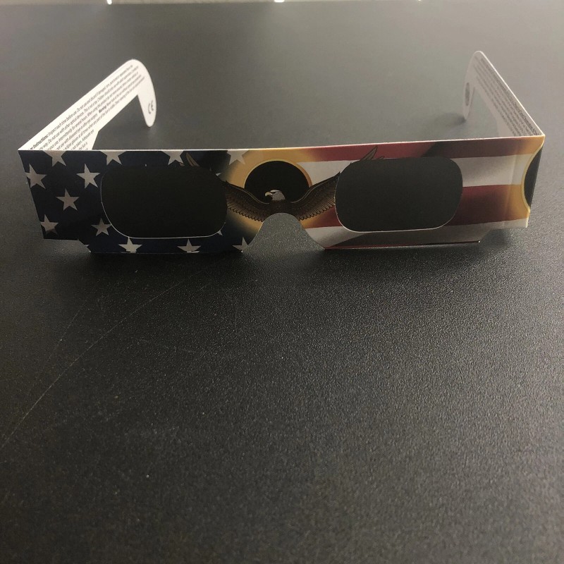 These "Patriotic Eagle" eclipse glasses are exclusively manufactured with 2 mil scratch resistant polymer (black/silver) lenses that filter out 100% of harmful ultra-violet and infrared rays and 99.999% of intense visible light. The premium eclipse filters create the sharpest solar images with a natural orange color. With an optical density of 5 or greater, these ISO 12312-2 compliant and CE certified eclipse glasses are independently tested and safe for all phases of the eclipse.