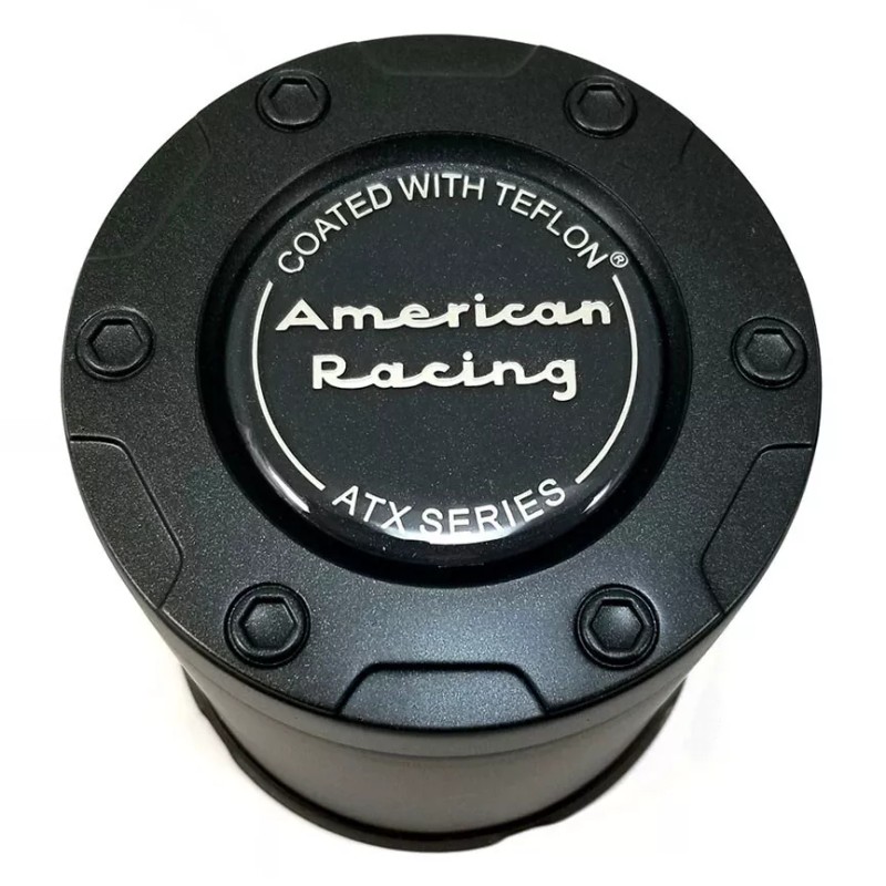 Push Through American Racing center cap, Teflon Coated charcoal grey finish.