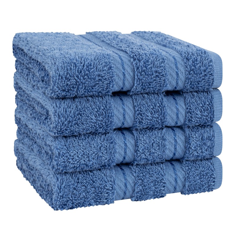 American Soft Linen - Juego de 4 paños de lujo para baño, 100 % algodón turco, paños suaves de 13 x 13 pulgadas para cuerpo y cara, trapos de lavado para cocina, paños de bebé, paños azules eléctricos