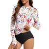 American Trends Women’s Rash Guard Long Sleeve Swimsuits for Women Two Pieces Swim Shirts Mock Neck Zipper Bathing Suit with Bottom Pink Floral S
