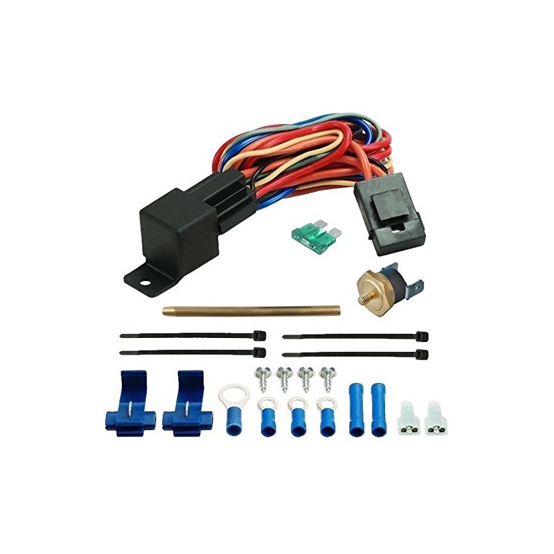 - 14AWG automotive electric fan 5-pin 40A relay switch harness kit.
