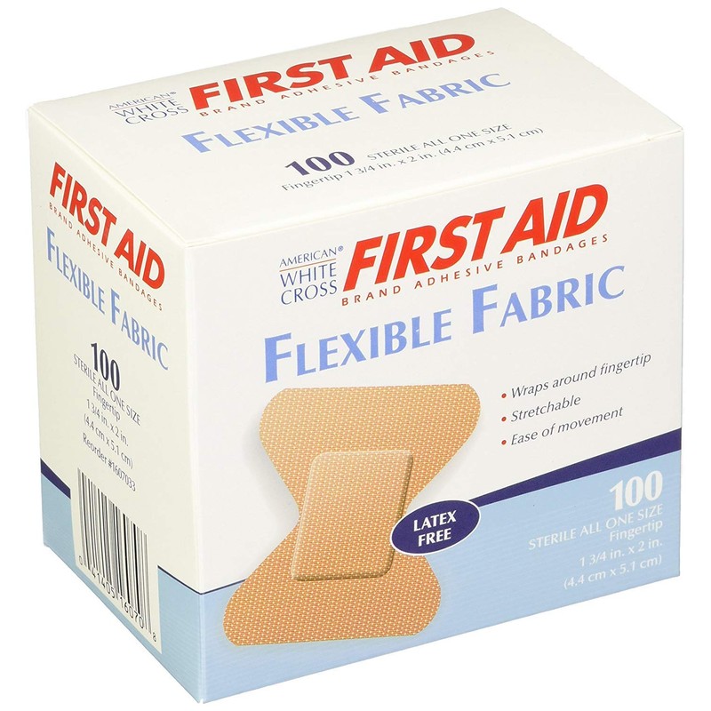 American White Cross Soft Flexible Fabric Bandages, 2" Fingertip, Box of 100