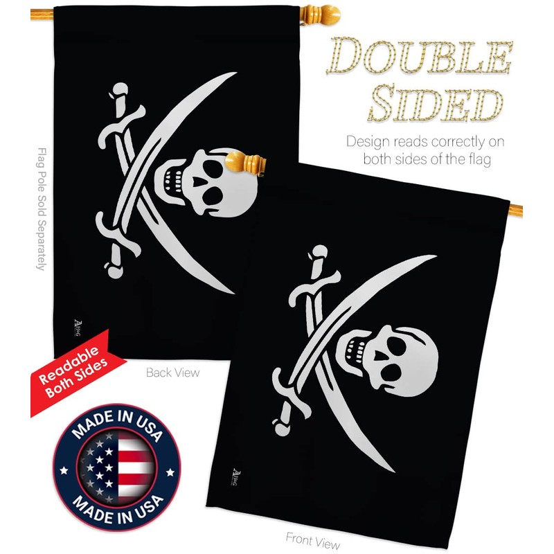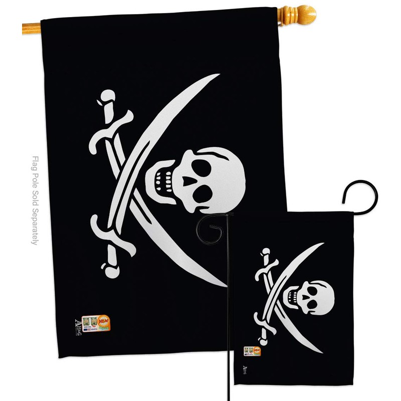 Americana Home & Garden Jack Rackhams Garden House Flag Set Coastal Pirate Ship Skull Treasure Map Carribean Jolly Blackbeard Decoration Banner Small Yard Gift Double-Sided, Made in USA
